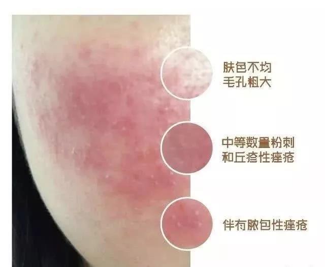“激素脸”的发病症状与皮肤过敏类似,你会感到皮肤发红发痒难以忍受。遇到季节交替、气温骤升骤降时,往往会加重症状,因此大部分人会当做是换季引发的皮肤过敏,想要辨别自己是否得了“激素脸”,我们一起仔细看看它的发病症状: