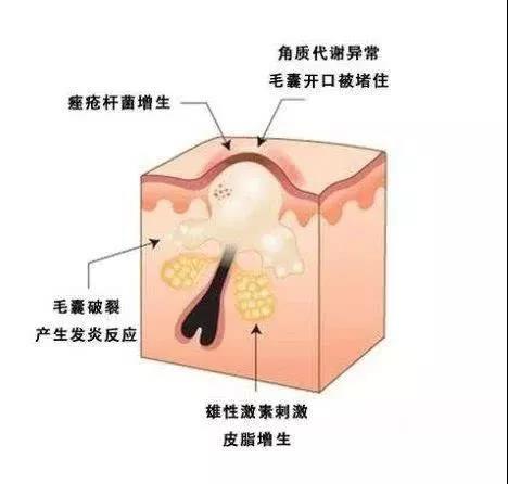 雄激素分泌过多,会刺激皮脂腺增生和皮脂合成增多,还会使皮肤的毛囊孔或皮脂腺开口的皮肤角质化加重,经毛孔分泌的油脂不容易排出等等,从而引发。